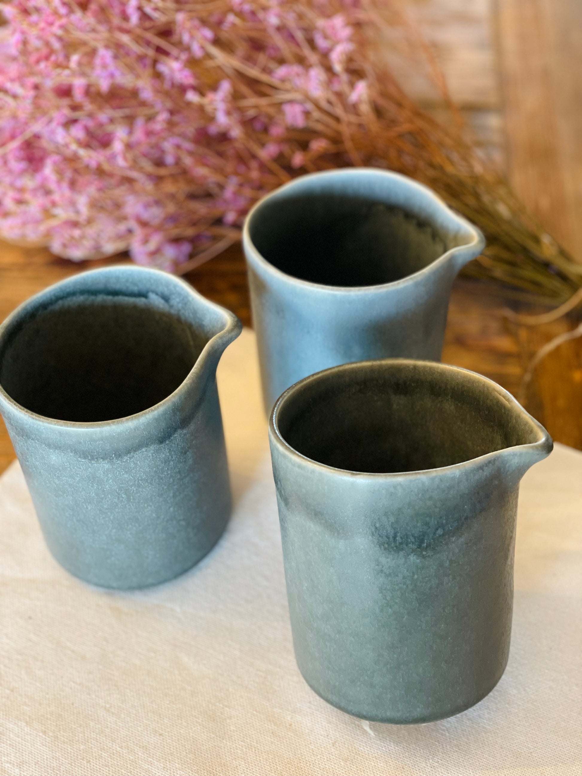 Jarro/molheira em degradé em tons cinza. Tem a capacidade de 0,5L